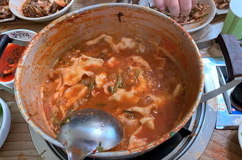 부들부들한 수제를 익혀서 내어주시는데 마지막 남은 매운탕 국물에 한소끔 끓여서 간장에 찍어 먹으면 기가 막힌다.