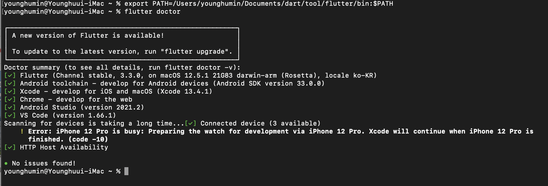 플러터 개발 준비가 끝났다는 이야기.