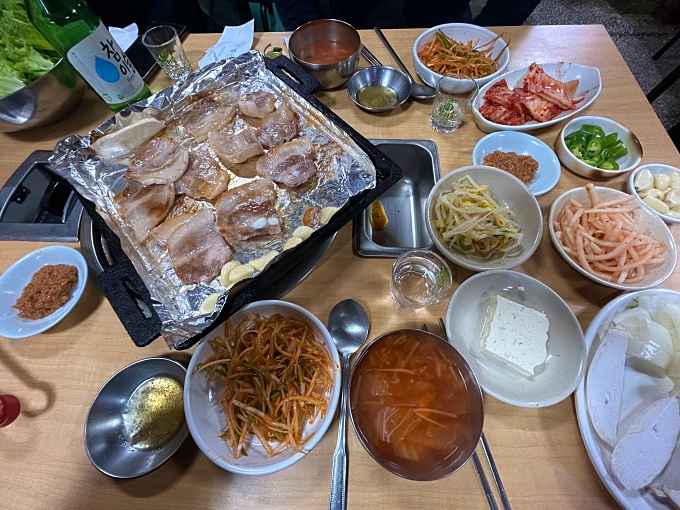 워낙 삼겹살에 소주를 좋아하는 타입이라, 쉼없이 꾸준히 먹었다. 고기 먹을 때 밥 없음 많이 못 먹는 체질로 변한지 오래.