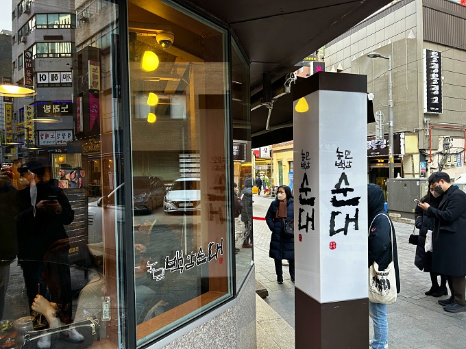 항상 사람이 많아 멀리서도 눈에 띄는 농민백암순대.