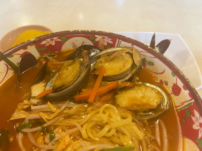 홍합을 먼저 건져 먹고, 잘 익은 숙주와 야채, 그리고 면발을 한 가득 집어 입에 넣으면 푸짐함 가득 풍미를 느낄 수 있는 짬뽕이다.
