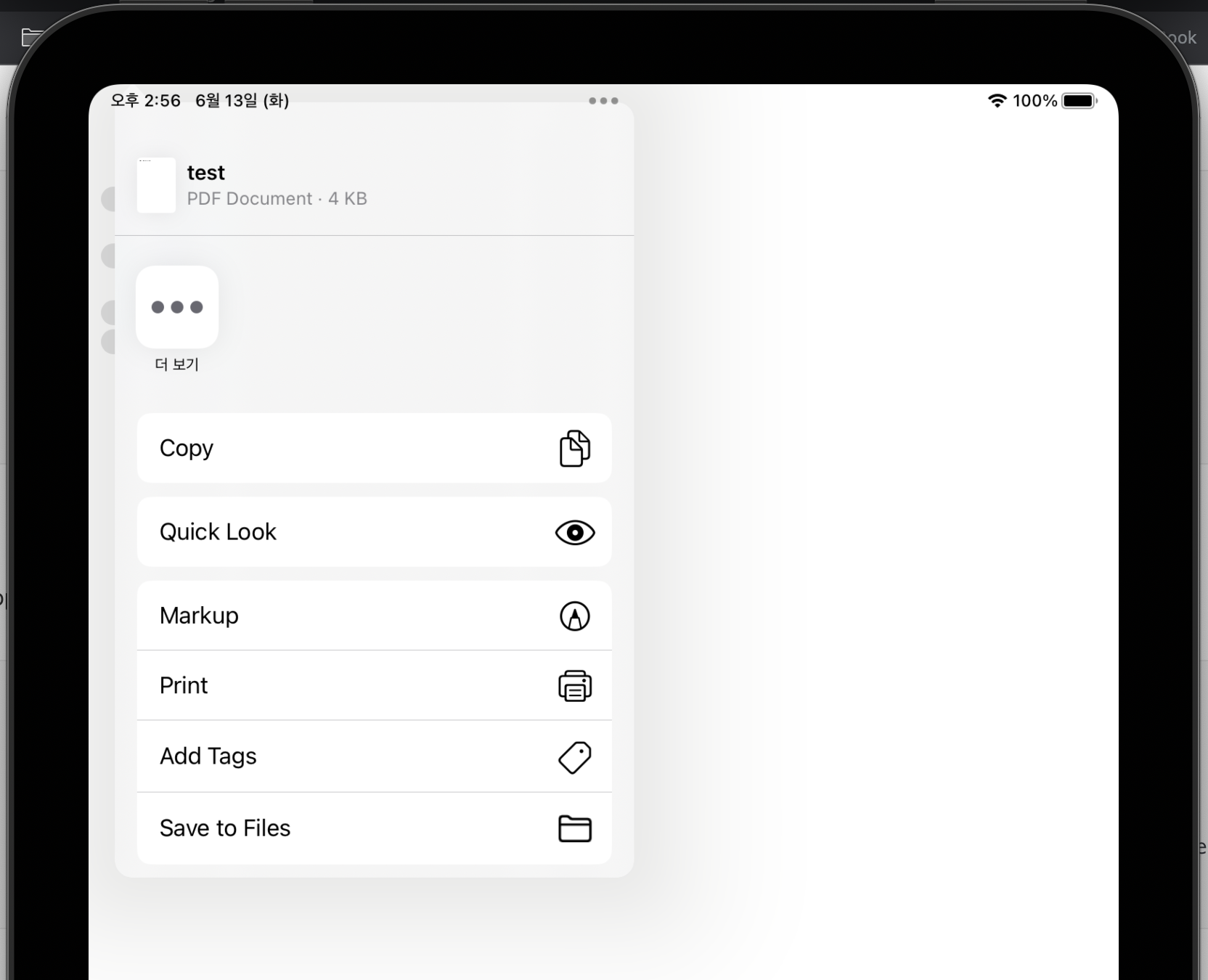 난 PDF문서를 보여줄 필요는 없기에 그냥 옵션 메뉴만 보이도록 처리하였다.