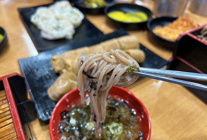 쫄깃한 메밀국수 면발이 땡기는 더운 여름날이다.