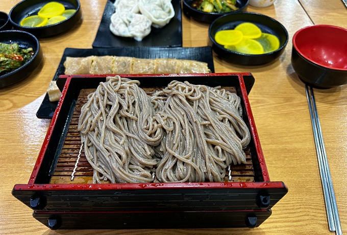 워낙 사람이 많아 대기줄이 길고 번잡스럽지만, 나 또한 메밀 국수를 아주 좋아하는 사람이 번거로움을 무릅쓰고 막히는 시내 도로를 뚫고 갔다. 주차는 근처 SC제일은행 지하에 주말주차로 이것 저것 할인해서 저렴하게 주차할 수 있었다.