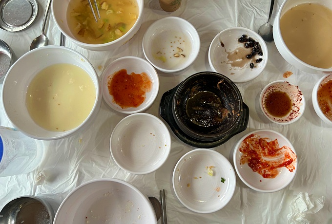 우리도 안쪽에 자리를 잡고, 순두부 3그릇과 황태해장국 1그릇을 주문했다.