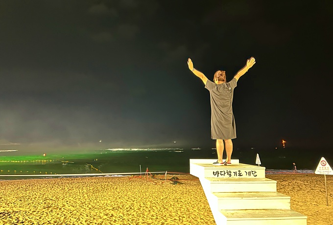 군데 군데 젊은 친구들이 한 여름밤의 속초해수욕장을 만끽하고 있었고 여기저기서 유쾌한 웃음소리가 가득했다.