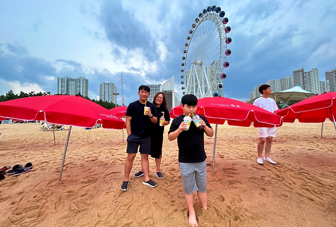 커피 한 잔 먹자는 큰 아들의 요청을 흔쾌히? 수락하여 메가커피에서 음료를 사서 속초해수욕장으로 돌아왔다.