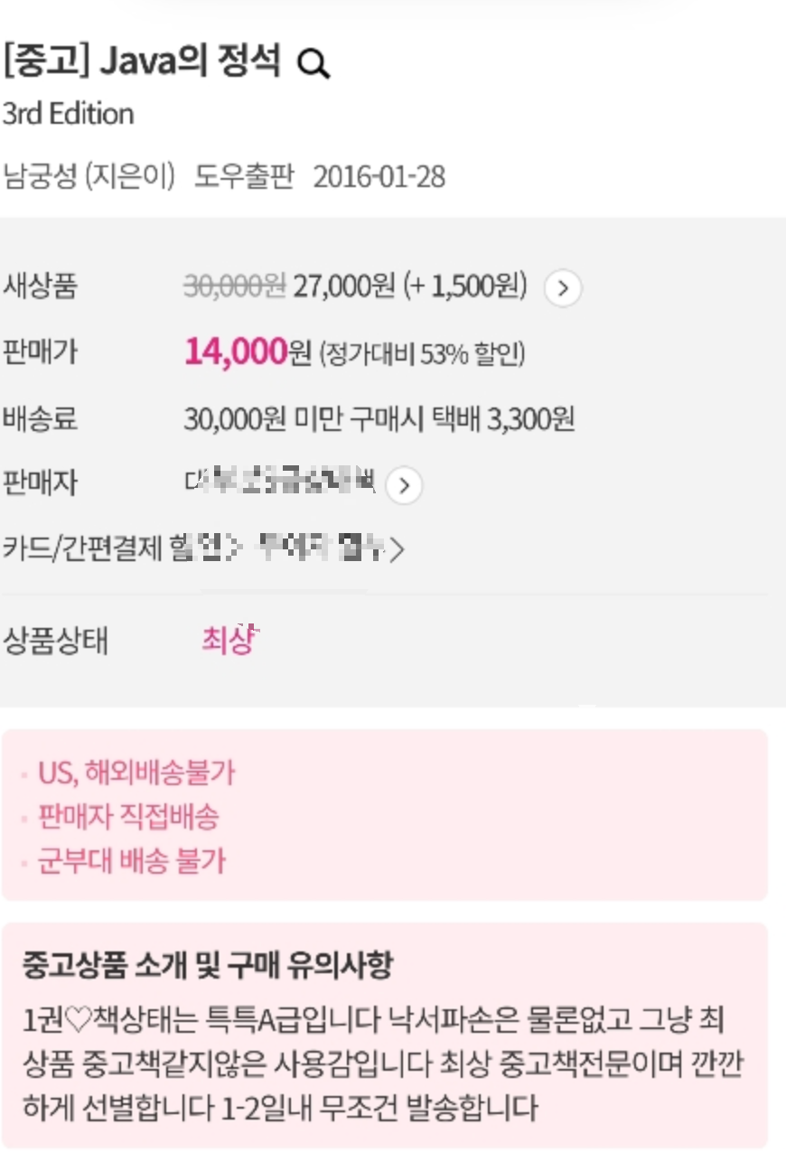 나는 자바의정석 3편, 제2권을 구입하기 위해 당근마켓을 검색했고,