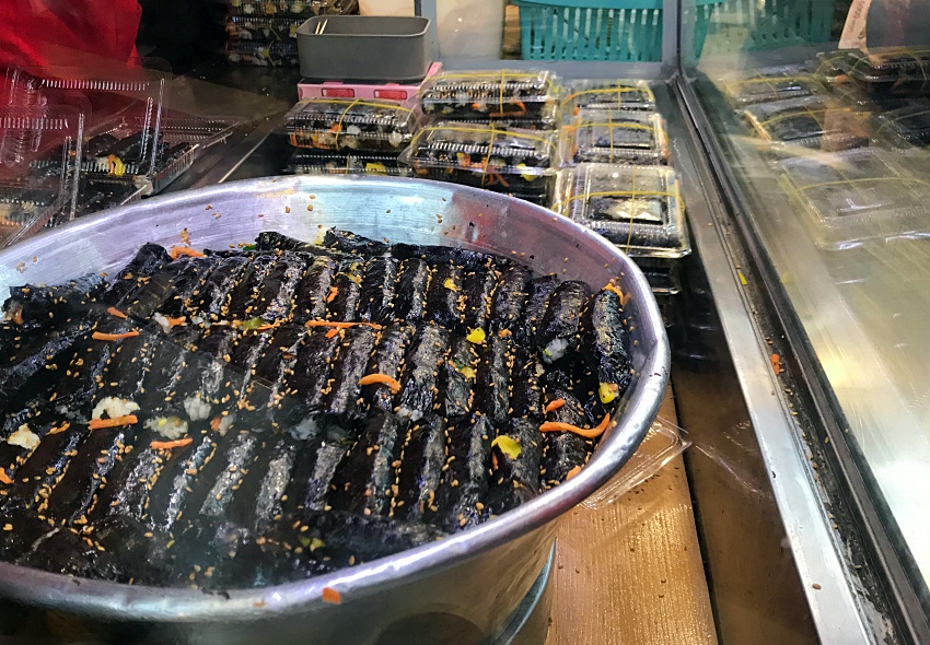 광장시장의 모녀김밥은 겨자소스가 핵심이다.
