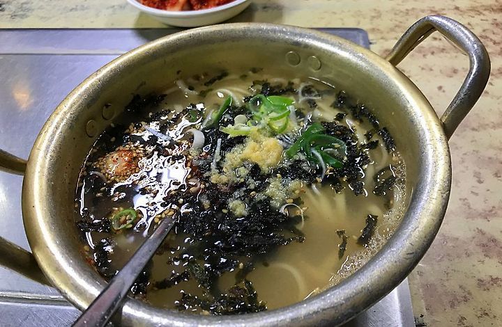 정말 간결하게 양은냄비에 담겨져 나온 칼국수를 한참 바라보다 국물 먼저 먹어보기 시작했다.