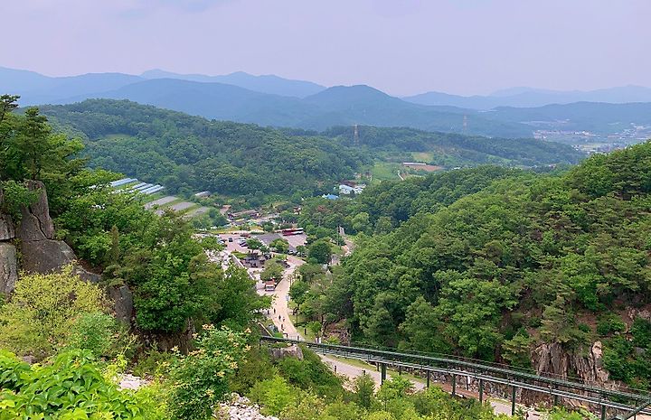 조각공원에서 바라본 아트밸리 매표소 및 주차장과 포천 전경