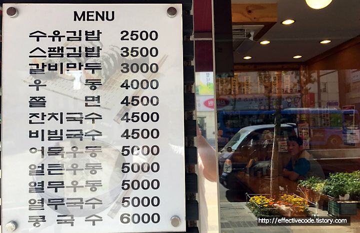 가끔 포장을 해서 집으로 가져 가서 먹는데 김밥 종류별로 한 줄씩, 어묵우동 하나 포장하면 든든하게 한 끼 먹을 수 있다.