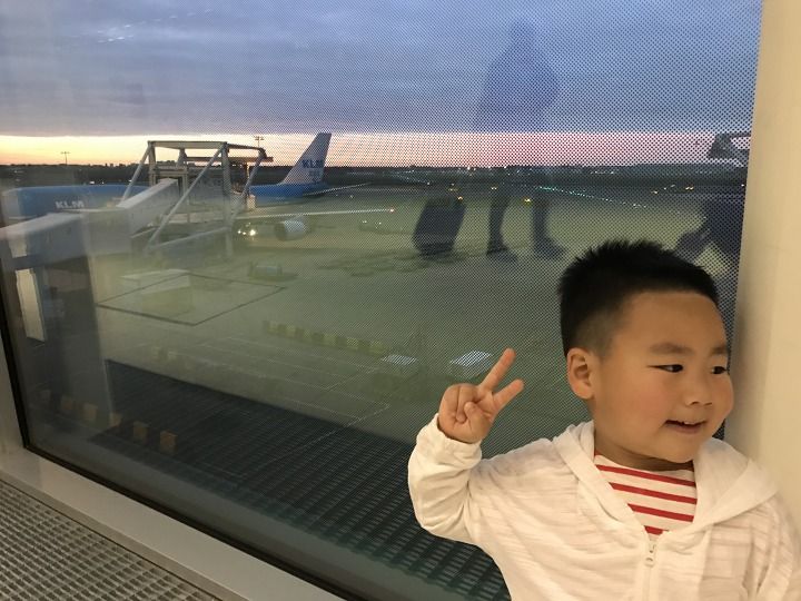 네덜란드 항공사의 KLM을 타고 왔고 성원이는 인증샷을 찍어 달라고 합니다. 암스테르담 스키폴 공항의 여명이 밝아 오고 있고 가슴은 벅차 올랐습니다. 드디어 유럽 여행의 시작이구나 하는...마음에 한껏 들떠 있었던 것 같습니다.