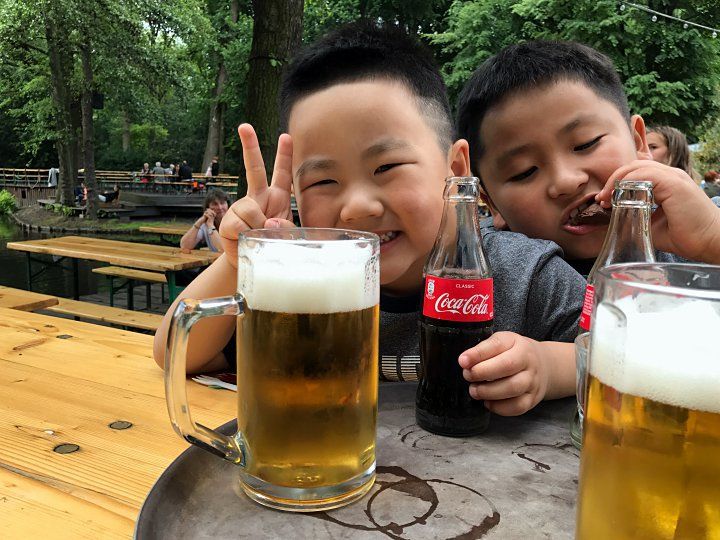 그렇게 Café am Neuen See의 야외 테이블에 우리가족과 친구가 둘러 앉았다.